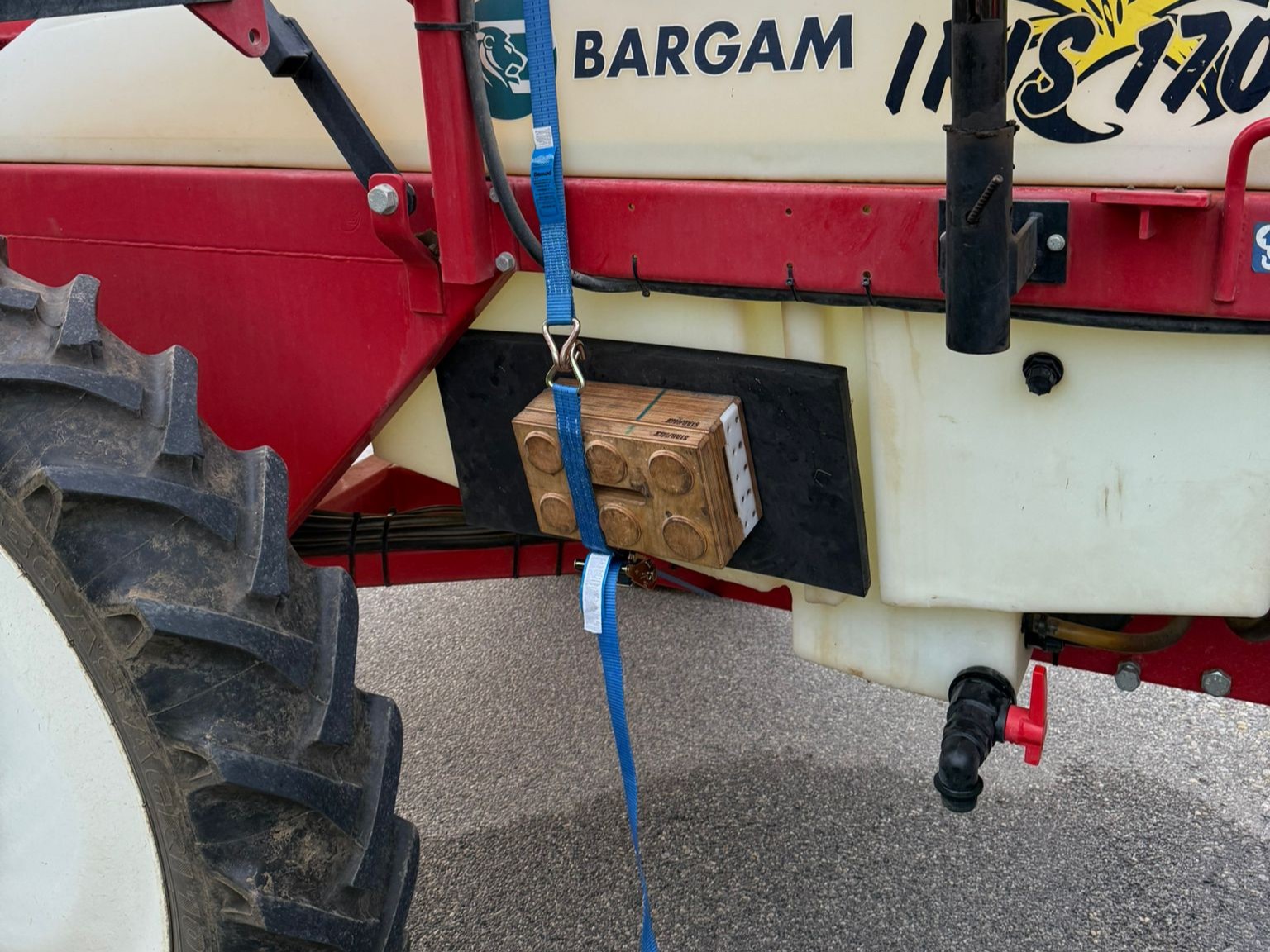 Als Übungszenario diente eine Feldspritze, aus der durch ein Leck eine unbekannte Flüssigkeit austreten konnte. Im ersten Schritt wurde unter der Spritze ein provisorisches Auffangbecken mithilfe von Leitern und Planen platziert. Anschließend wurde das Leck abgedichtet.