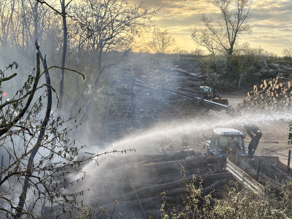 Zur Sicherstellung der Wasserversorgung wurde ein Tankpendelverkehr eingerichtet. Mithilfe eines Rückewagens konnte der Holzstapel auseinandergeräumt und so effizient abgelöscht werden. Nach umfangreichen Nachlöscharbeiten wurde eine Brandwache eingerichtet, um mögliche Glutnester zu kontrollieren.