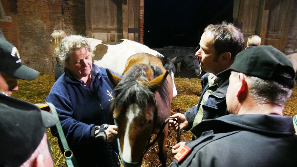 Darunter fielen zum Beispiel das Herausführen der Pferde aus einem Pferdeanhänger oder das Anlegen eines provisorischen Halfters. Besonders interessant wurde die Schulung durch die Vorführung und die Möglichkeit die Inhalte selbst direkt an Schulungspferden vor Ort durchzuführen.