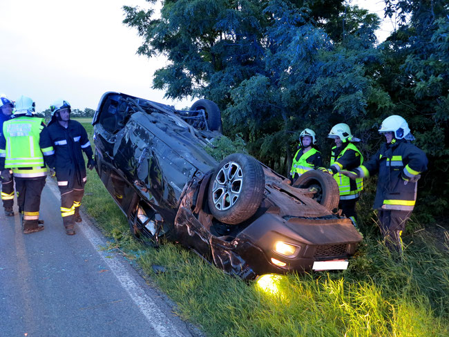 Unglaubliches Glück im Unglück hatte ein Fahrzeuglenker, der am 11.06.2019 von Dobermannsdorf in Richtung Hohenau fuhr. Kurz vor 21:00 Uhr verlor er aus bisher unbekannter Ursache die Kontrolle über den Wagen, prallte gegen einen Baum am linken Straßenrand, überschlug sich mehrfach und kam schließlich neben einer Baumgruppe auf dem Dach liegend zum Stehen.