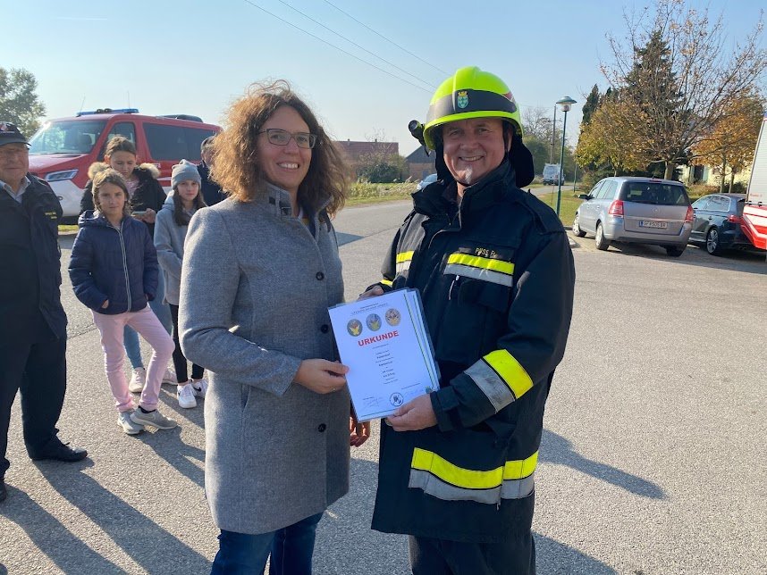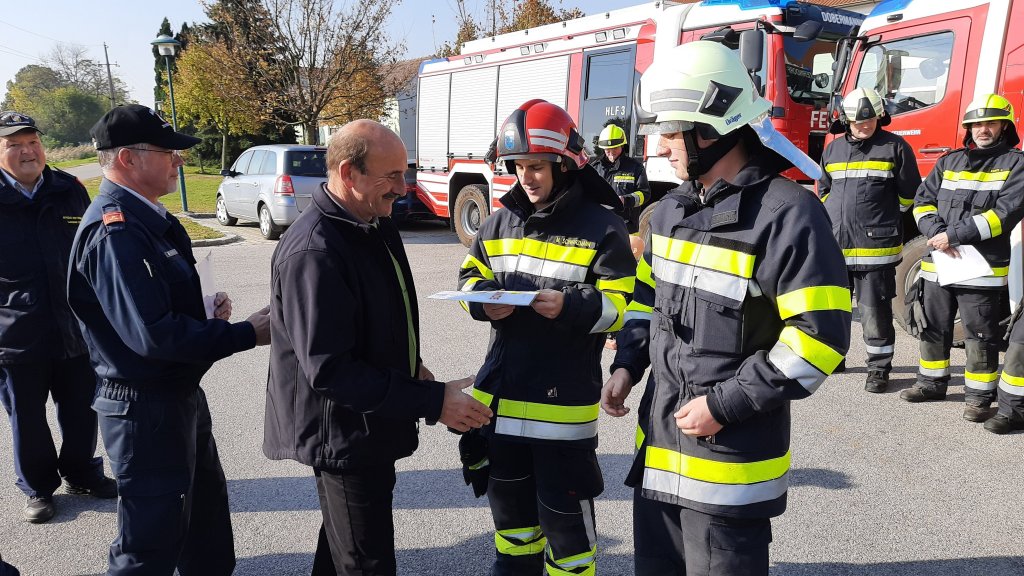 Zu den Gratulanten zählten Abschnittskommandant-Stv. Johann Kindl und EABI Leopold Geiter, sowie seitens der Gemeinde Bürgermeister Eduard Ruck und Vize-Bürgermeisterin Marina Kargl.