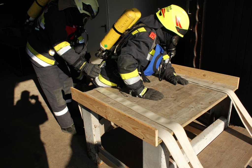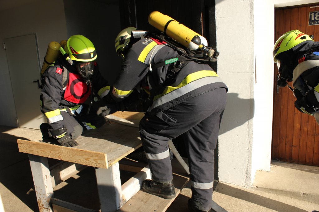 Bei der Ausbildungsprüfung Atemschutz müssen 4 Stationen innerhalb einer vorgegebenen Zeit absolviert werden: