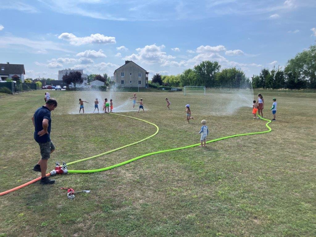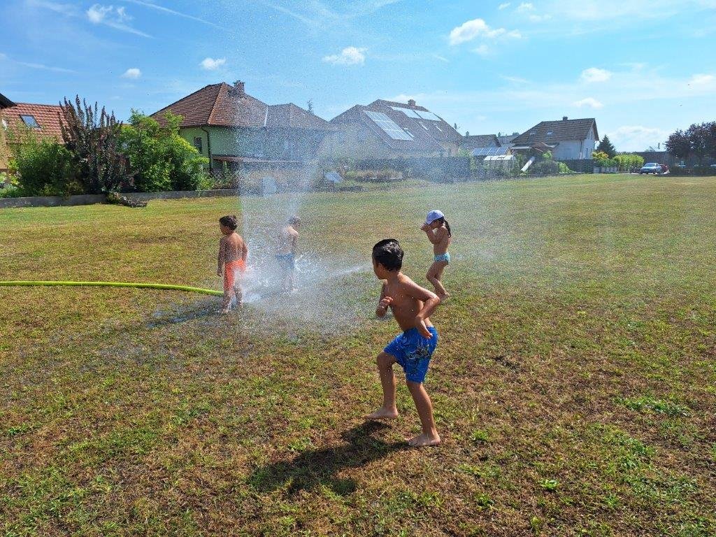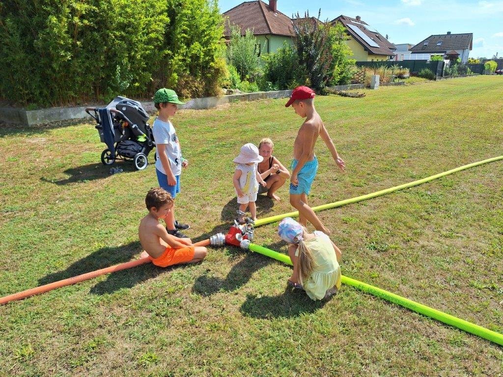 Natürlich durften dann einige Gerätschaften wie Kübelspritzen, Hydroschild und Strahlrohr ausprobiert werden - vor allem bei den Temperaturen eine willkommene Erfrischung. Zum Abschluss gab es eine Fahrt mit dem Feuerwehrauto wo sich alle nochmals als vollwertige Feuerwehrmann/-frau auf den Weg zu einem Einsatz fühlen durften.