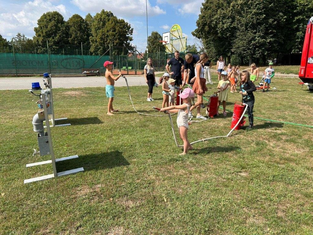 Am Freitag, den 09.08.2024 durfte sich die Feuerwehr bei der diesjährigen Ferienbetreuung präsentieren. Mit Begeisterung waren die Kinder dabei das Feuerwehrauto zu erkunden. Vor allem das vorhandene Wissen hinsichtlich Aufgabenbereich und Verständigung der Feuerwehr war beeindruckend.